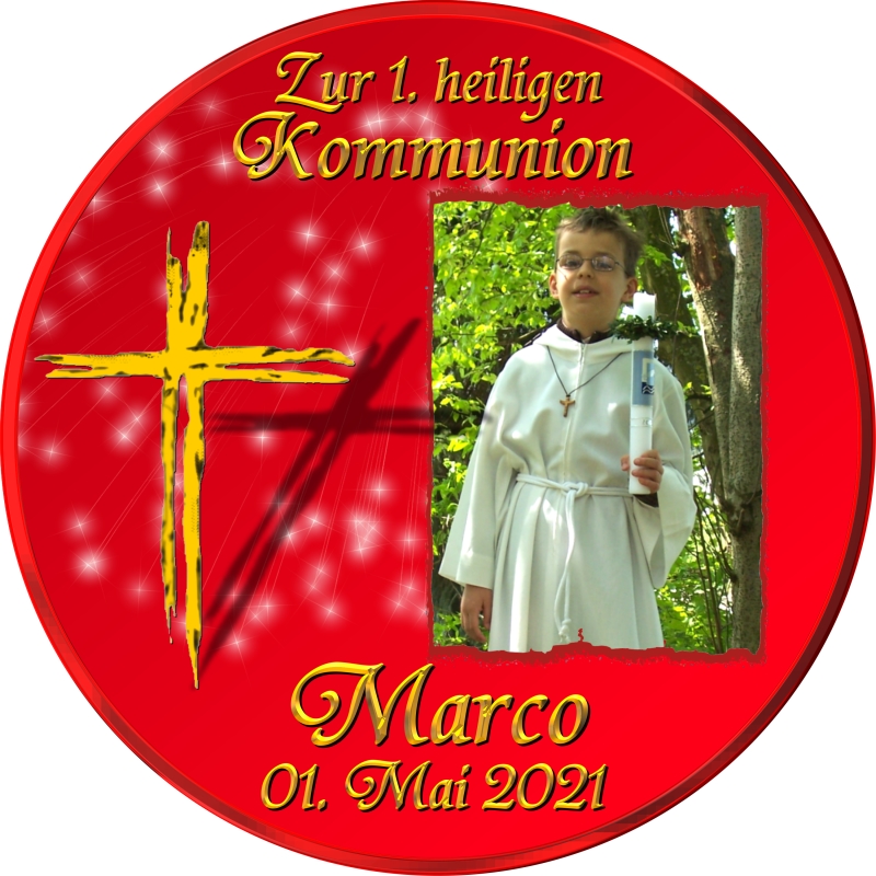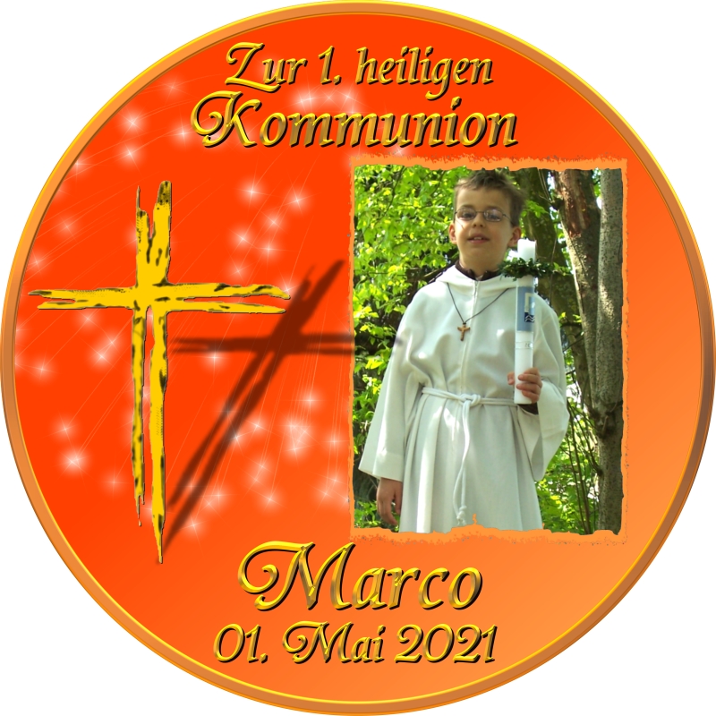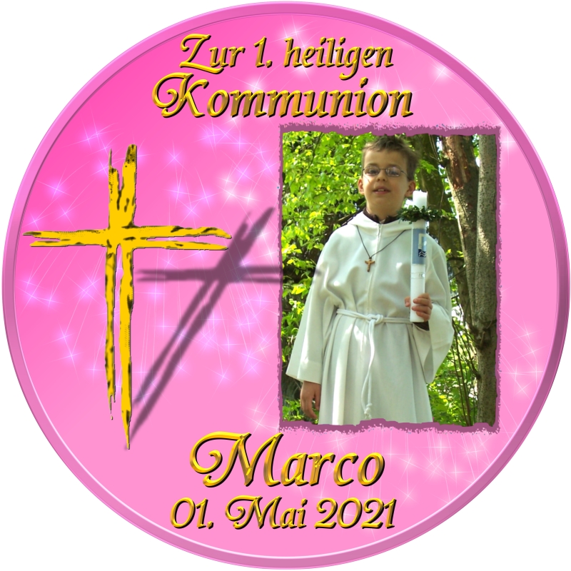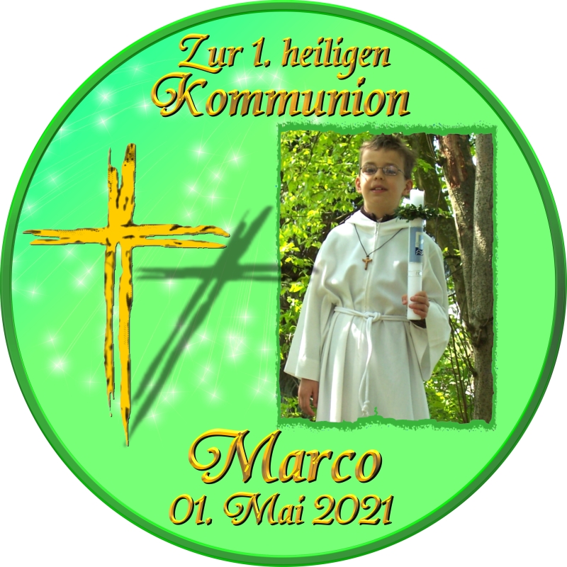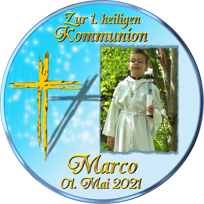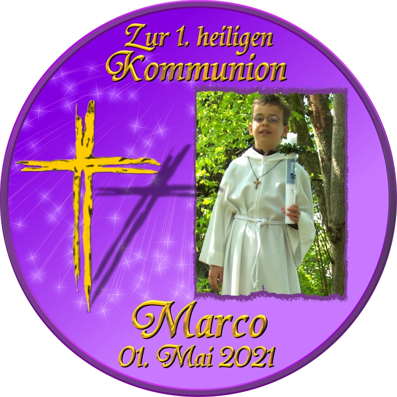 Für Kommunion, Konfirmation, Firmung, Jugendweihe oder ähnliche Anlässe. Durch den frei bestimmbaren Text kann dieser Aufleger für jedes dieser Feste erstellt werden.