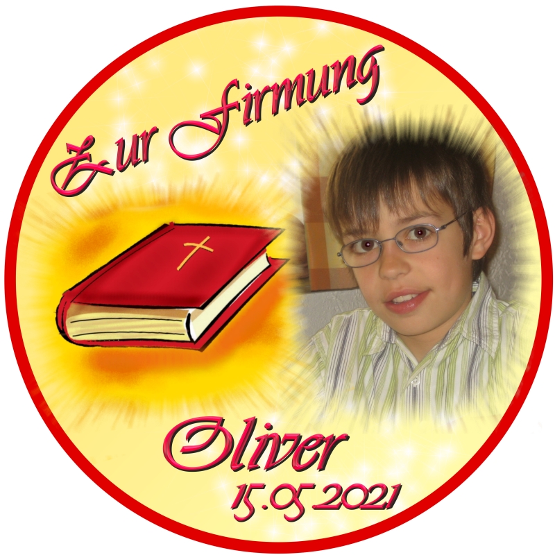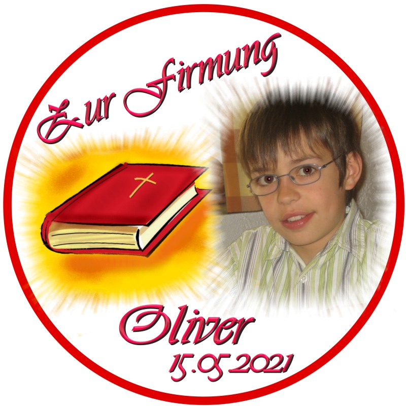 Für Kommunion, Konfirmation, Firmung, Jugendweihe oder ähnliche Anlässe. Durch den frei bestimmbaren Text kann dieser Aufleger für jedes dieser Feste erstellt werden.