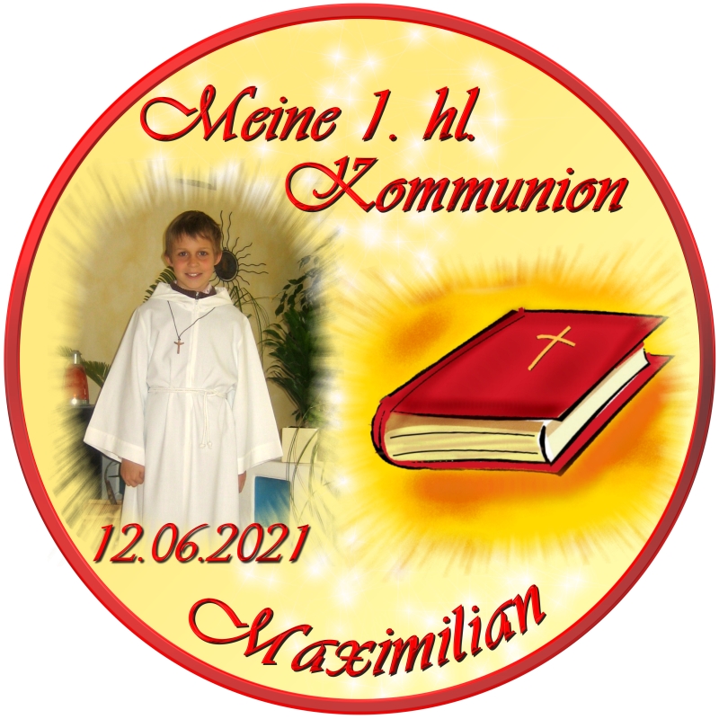 Für Kommunion, Konfirmation, Firmung, Jugendweihe oder ähnliche Anlässe. Durch den frei bestimmbaren Text kann dieser Aufleger für jedes dieser Feste erstellt werden.